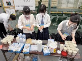 10/4(土)「サイエンスモールin飯塚」に出展しました。・場所「飯塚市総合体育館」・出展内容「スライムをつくろう!」・参加生徒(14名) 3-3 森田 歌音 2-1 小島ゆい、高尾聡一郎、綿井悠真 2-2 伊藤愛結、瀬尾帆加、福島大翔 2-3 梅木悠真 2-4 西本航太朗、山本楓和 1-1 小柳尚輝、田中美玖 1-4 井上蓮大 1-6 松岡大暉・大雨警報のため終了時刻が30分繰り…