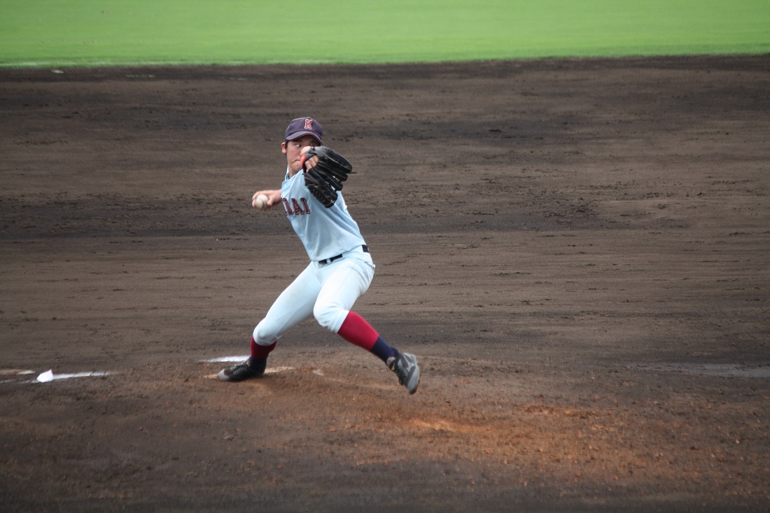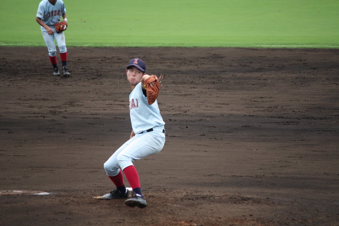 今年のチームは、主力の多くが2年生という若いチームでしたが、最後のこの試合は3年生が躍動しました。3年生の森田はエースとして、気迫を前面に出すピッチング。逆転を信じ力投しました。