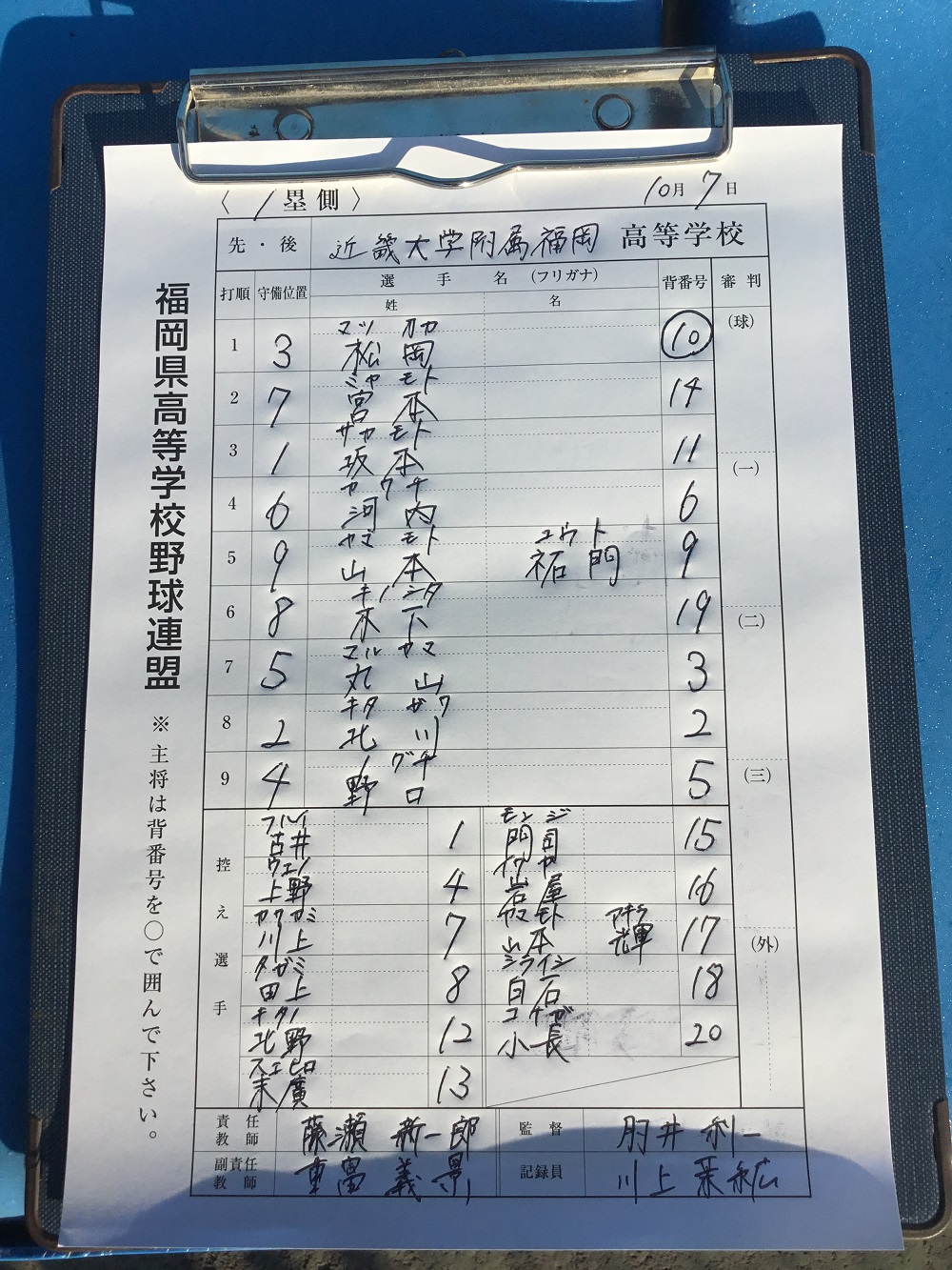 バッテリー:坂本(1~5回)、末廣(6~10回)―北川(1~5回)、古井(6~10回)