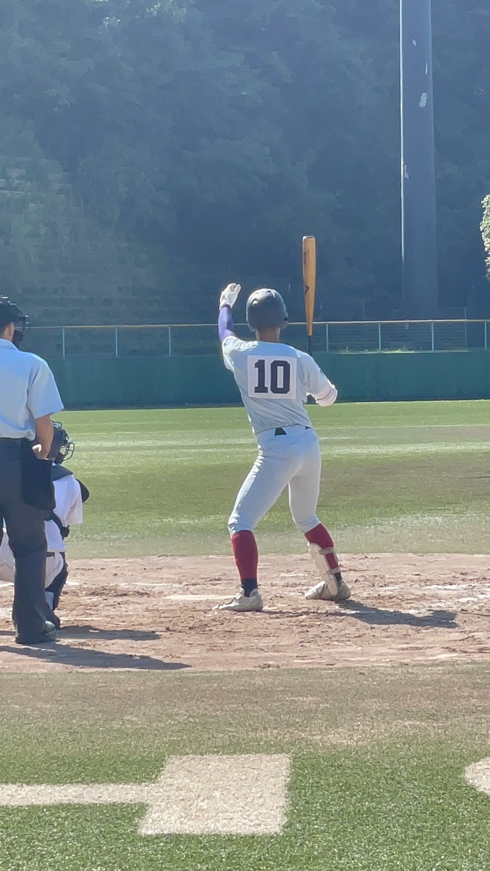 迎えた10回裏、河内、山本祐のヒットなどで2死満塁のチャンスを作ると、この試合9番に入った野口が、ツーボールツーストライクからの甘い変化球を逃さず、センタオーバーのサヨナラタイムリーを放ち、本校が5-4で勝利しました。