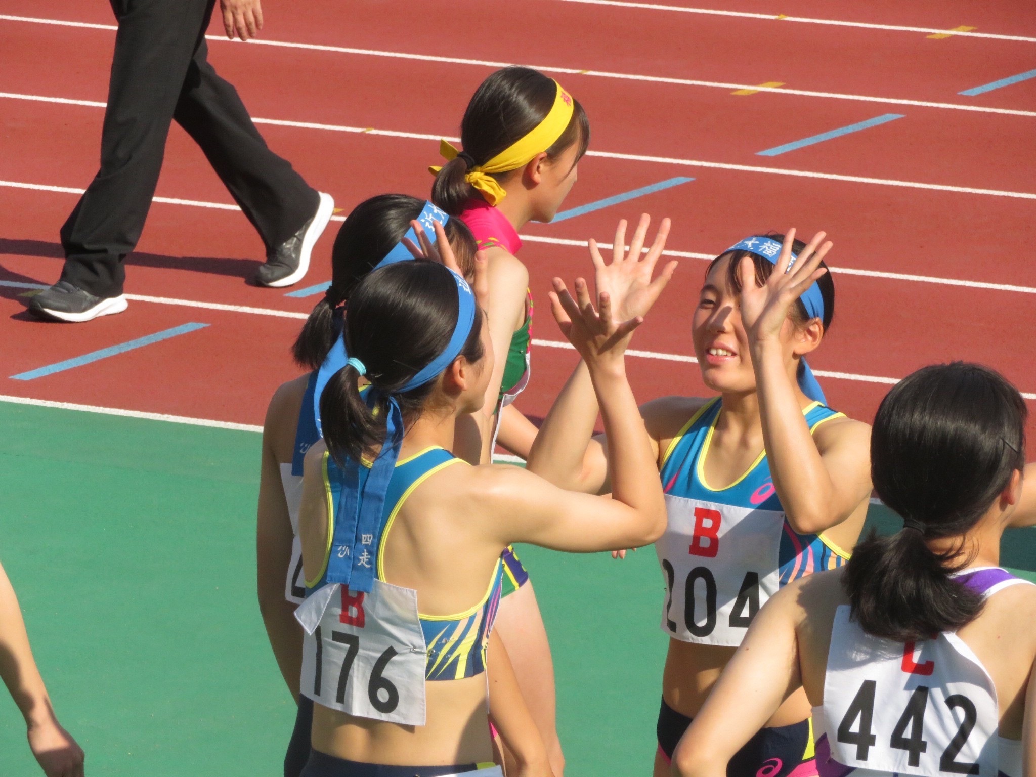一般女子4×400mリレー 2位 2年4組 廣瀬沙知(飯塚第一中) 2年6組 吉村美南(稲築) 2年7組 小西悠生(桂川) 3年7組 加来さくら(志免東)