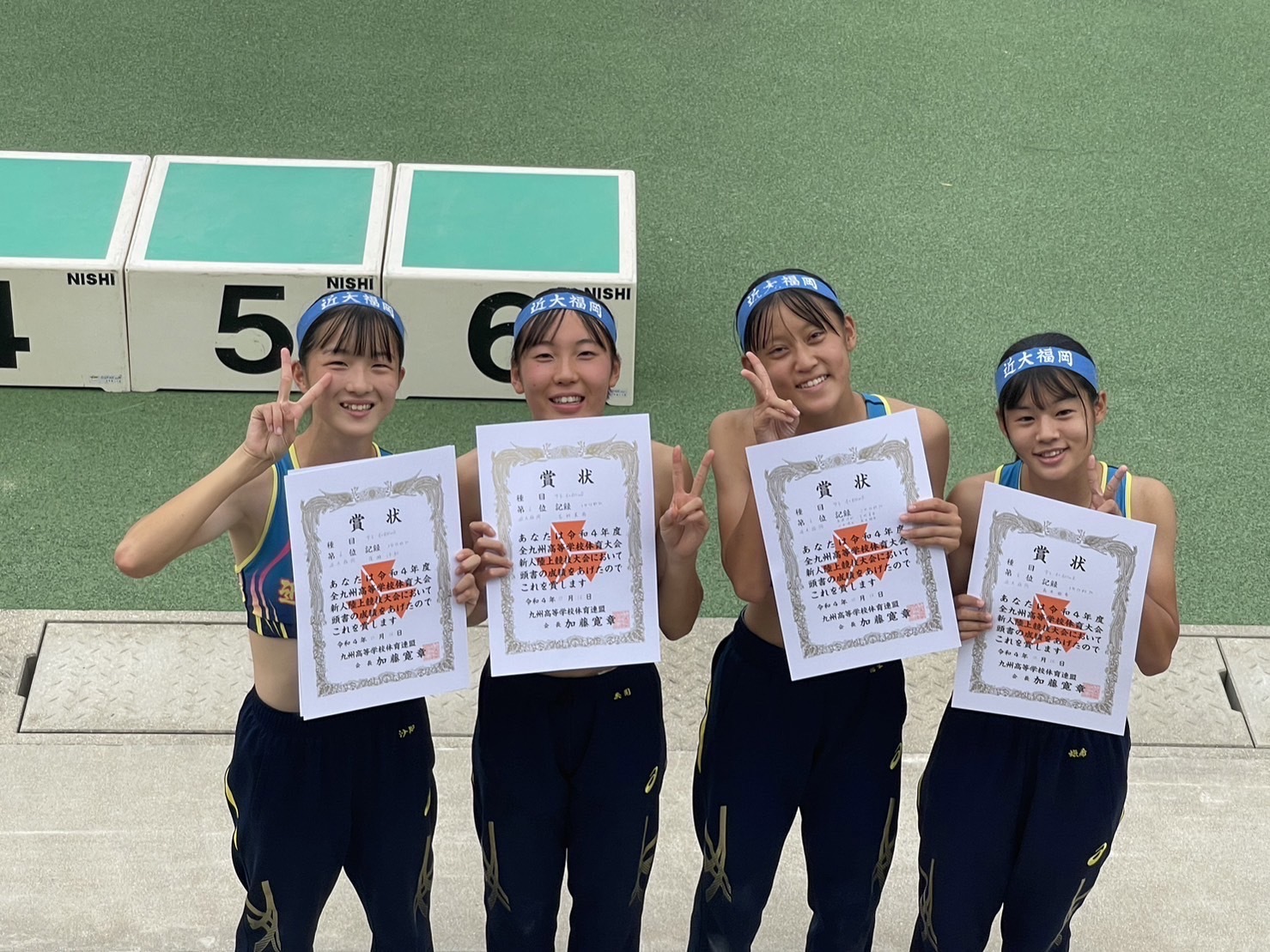 女子4×400mリレー 6位 2年4組 廣瀬沙知(飯塚第一中)2年7組 小西悠生(桂川中)2年6組 吉村美南(稲築中)1年7組 髙木姫希(庄内中)