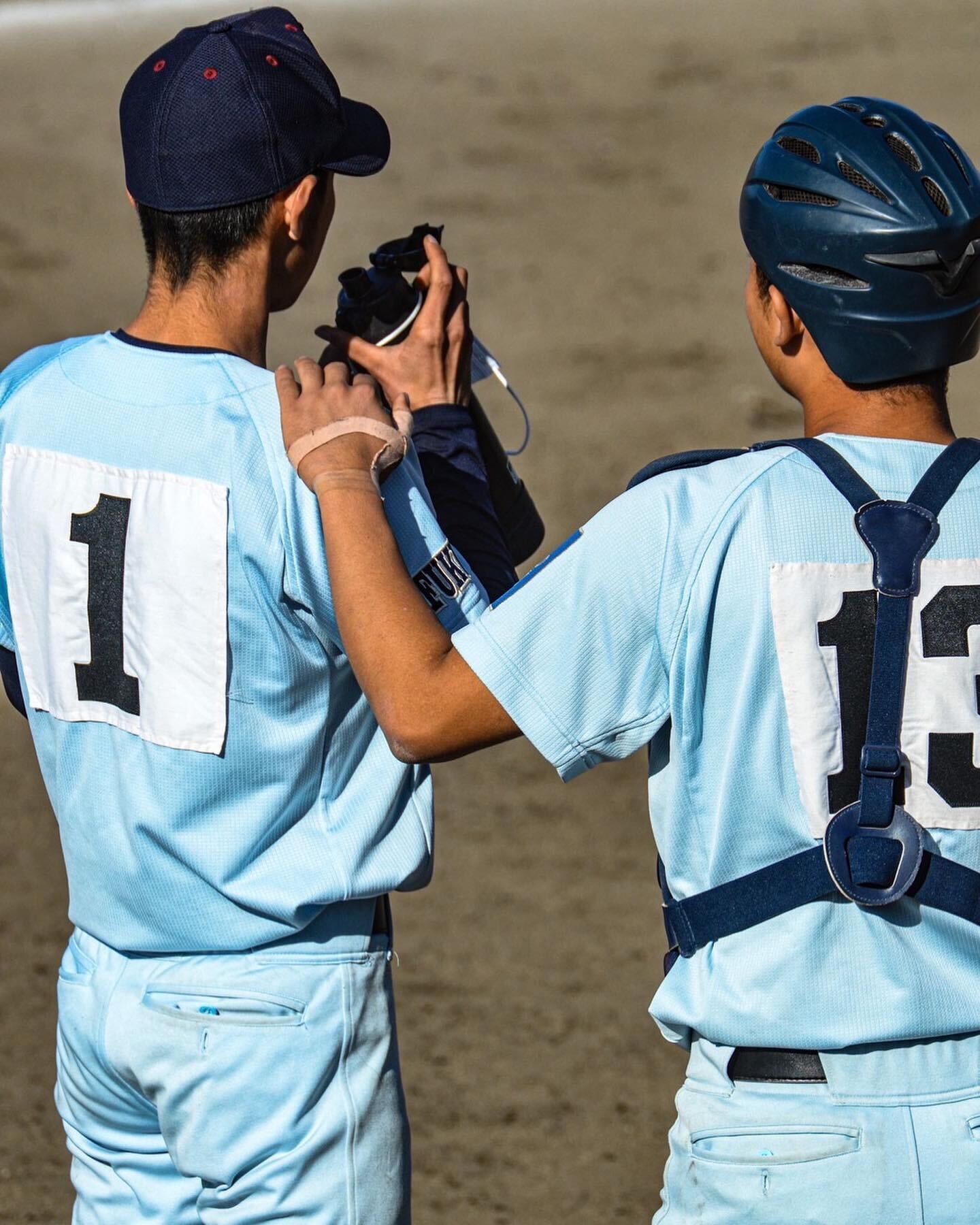 反撃したい本校でしたが、池川投手の力のある速球をなかなか捉えきれないまま試合は終盤8回表を迎えます。この回先頭の1番谷口がレフト前に鮮やかにはじき返すと、2番中川も左中間へ運び無死1,2塁。3番田邊も迷わず強攻。田邊の打球はピッチャーを襲い、ピッチャー強襲のヒットで無死満塁。この試合最大のチャンスを迎えます。4番河村は倒れ1死満塁。ここで打席には今日ヒットも放っている5番山本悠。しかし、山本悠は直球を振り抜くも、詰まった打球はピッチャーへの平凡なゴロ。万事休すかと思われましたが、池川投手がこの打球をまさかのファンブル。本校がなんとか同点に追いつきます。なおも1死満塁でしたが後続は連続三振を喫し、この回は同点止まり。