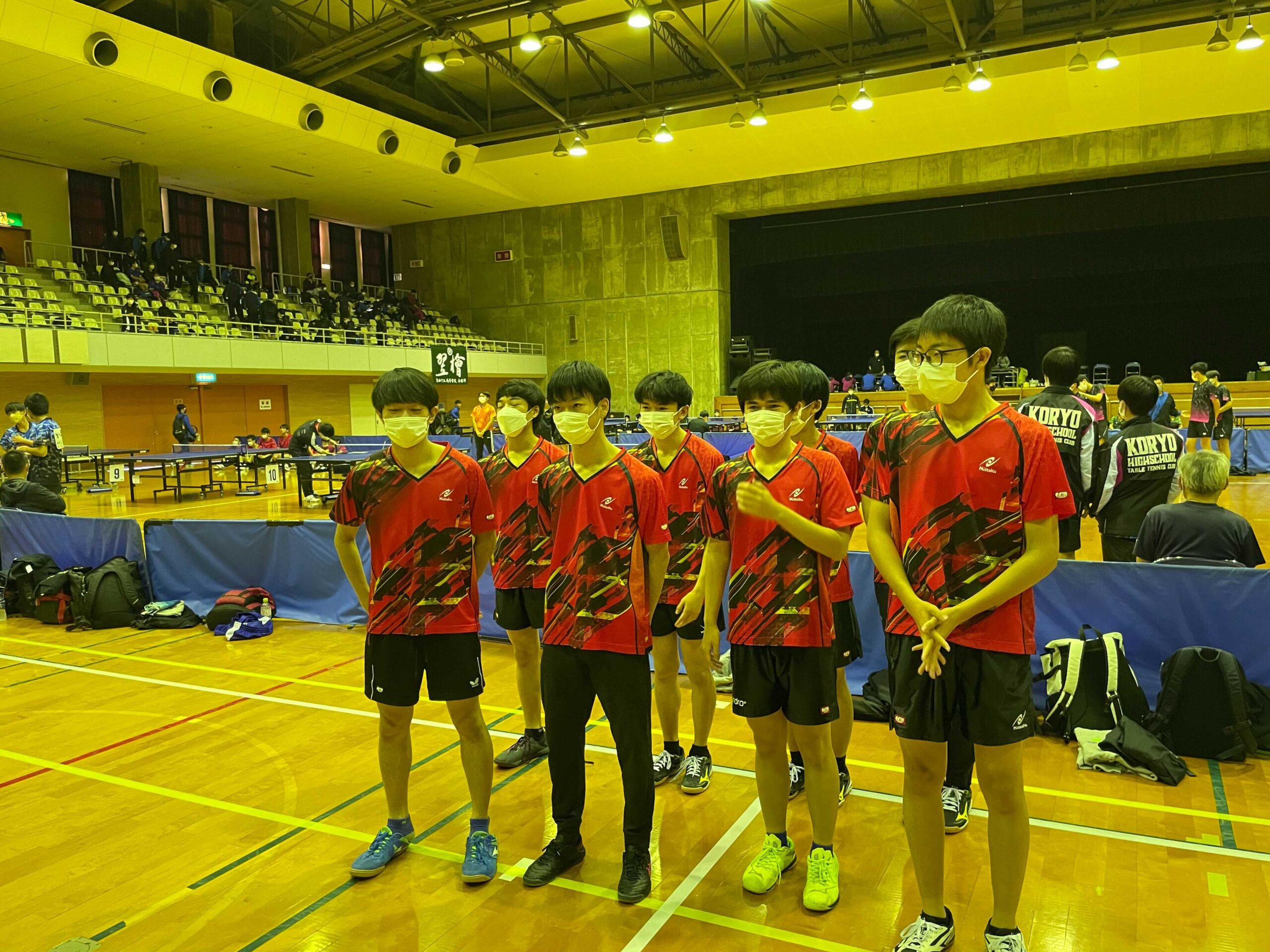 飯塚第一体育館にて令和4年度福岡県高等学校卓球競技新人大会県予選会(学校対抗)が行われ、男子団体が出場しました。