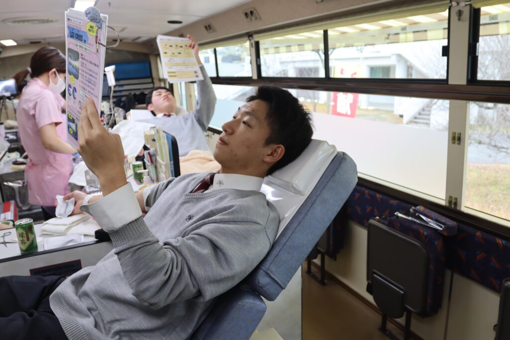 2025.12.16 R7 献血活動 12月15日(月)本校で献血活動が行われ、多くの生徒と教職員が協力しました。生徒にとっては初めての献血という貴重な機会を得られたとともに、改めて社会貢献活動について考えるきっかけになったと思います。献血してくれた生徒の皆さん、そして日本赤十字献血センターの皆さん、ありがとうございました!